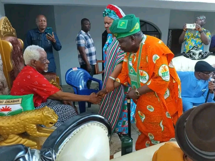 The retired deputy inspector general of police and Political Leader of Etim Ekpo Local Government Area of Akwa Ibom State, Udom Udo Ekpoudom (Rtd), OON, on a maiden consultative visit to traditional institutions, paid homage to the Paramount Ruler of Etim Ekpo, Amanam Akpan Udo, alongside a delegation of eminent sons and daughters of the area.