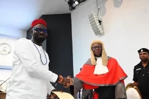 The New Deputy Governor Of Edo State, Omobayo Marvelous Godwins, has taken the oath of office as the Deputy governor of Edo State.